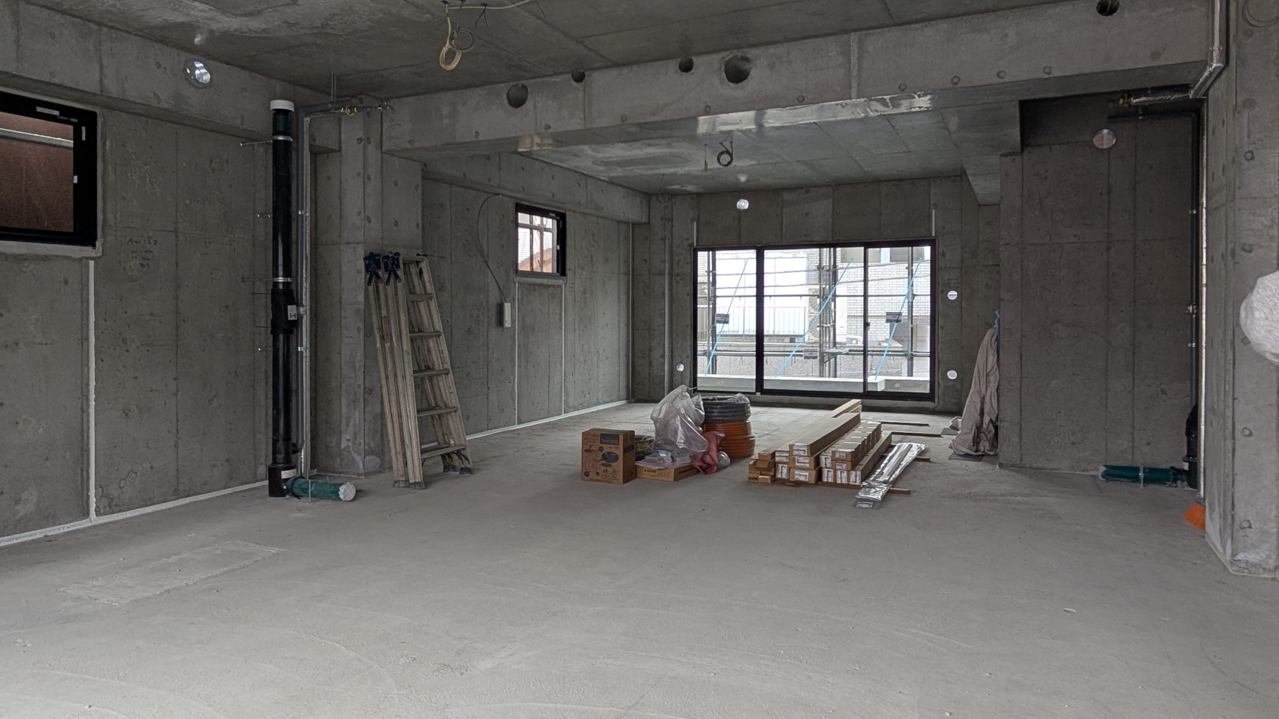 機能的には、窓から離れた奥のスペースは暗い印象になりがちなため、ピンクのグラフィックを配置することで、それを払拭しています。